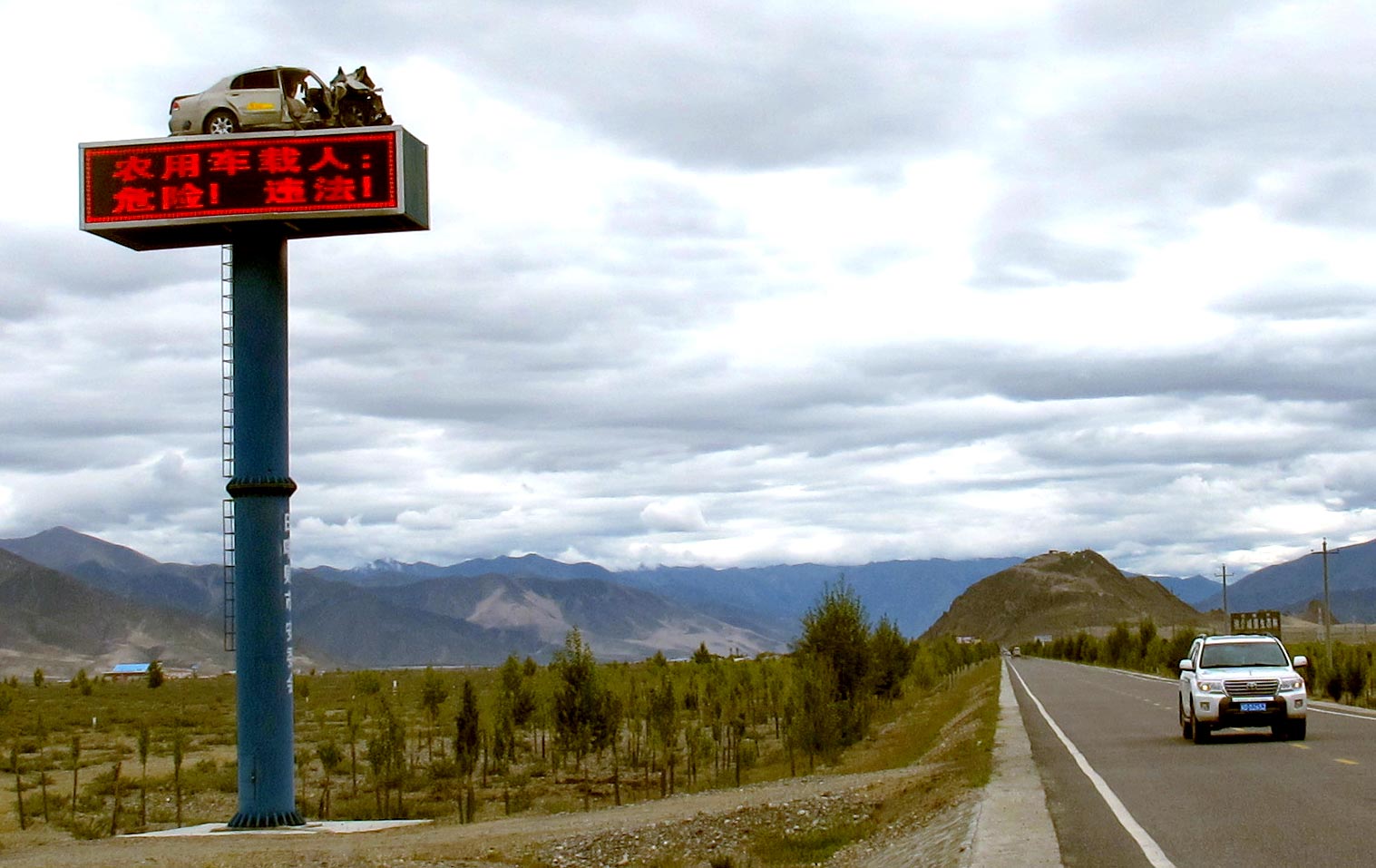 We spent the next day recuperating, getting massages at the spa, intermittently watching the mechanics restore our bikes to working order; the support truck trailing us was carrying spare parts. On the third morning of our ride, 14 riders and a support truck took off for the Sino-Nepalese Friendship Bridge, which has to be crossed on foot, dragging the bike along, switching from the left side of the road to the right side.