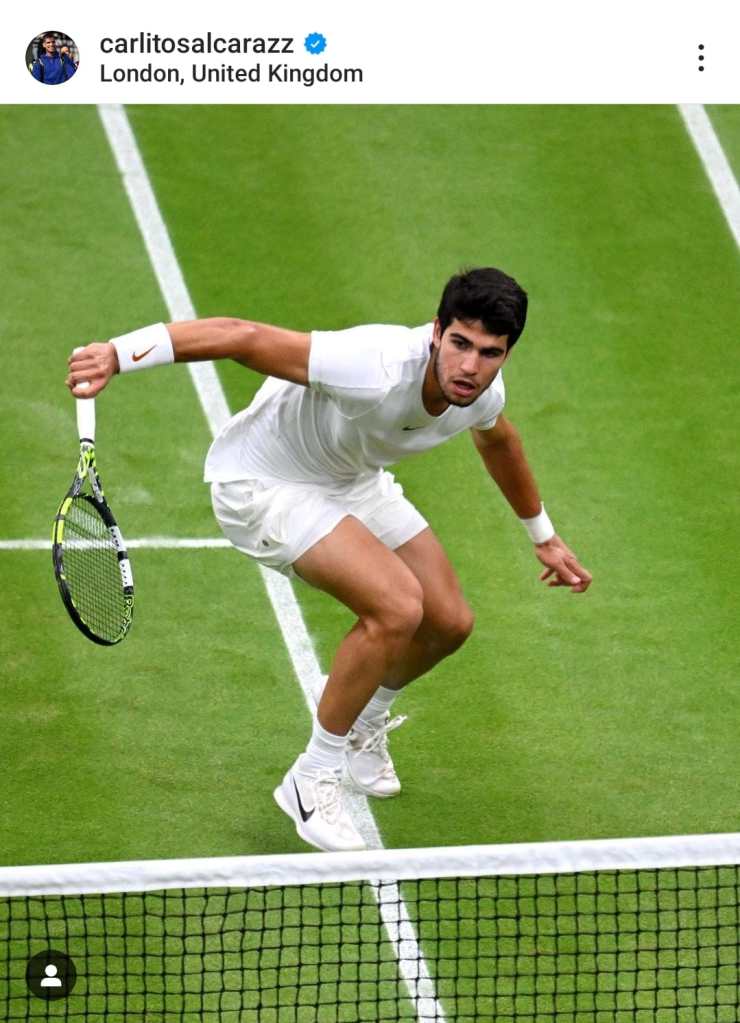 उनके बाद वह लड़का माइक्रोफोन पर आया जो दो महीने पहले बीस बरस का हुआ है। जिसने अपना पहला ग्रैंड स्लैम पिछले साल सितंबर में जीता। जो सबसे कम उम्र में पहली वरीयता पाने वाला खिलाड़ी है। जिसने पाँच सेट के इस यादगार विंबलडन फाइनल में सोलह साल बड़े जोकोविच को मात दी थी – वही जोकोविच जिन्होंने पिछले महीने उन्हें फ्रेंच ओपन के सेमी-फाइनल में हराया था।